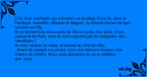 Mais le naufragé est prit d'un fou rire incontrôlable. Il finit donc décapité.