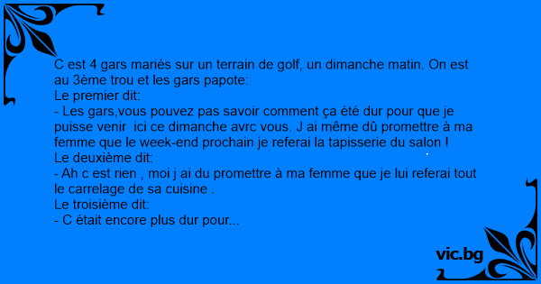 C est 4 gars mariés sur un terrain de golf, un dimanche matin. On est au 3ème trou et les gars papote: