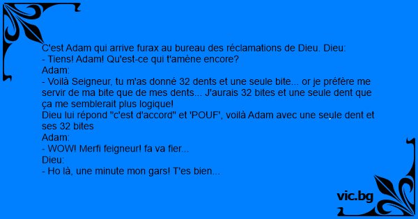 Dieu lui répond "c'est d'accord" et 'РОUF', voilà Adam avec une seule dent et ses 32 bites