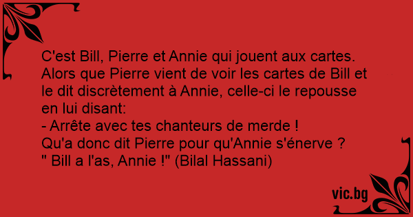 C'est Bill, Pierre et Annie qui jouent aux cartes.