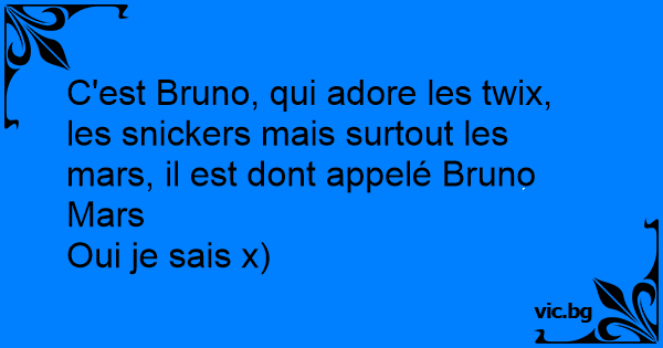 C'est Bruno, qui adore les twix, les snickers mais surtout les mars, il est dont appelé Bruno Mars