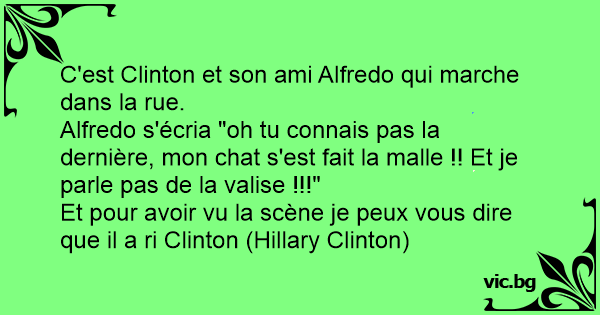 Alfredo s'écria "oh tu connais pas la dernière, mon chat s'est fait la malle !! Et je parle pas de la valise !!!"