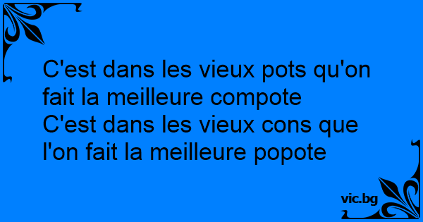 C'est dans les vieux pots qu'on fait la meilleure compote