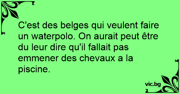 C'est des belges qui veulent faire un waterpolo. On aurait peut être du leur dire qu'il fallait pas emmener des chevaux a la piscine.