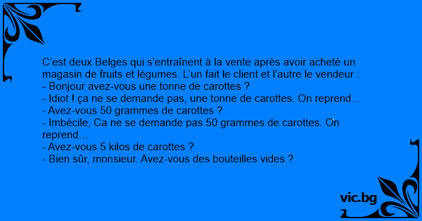 - Imbécile, Ca ne se demande pas 50 grammes de carottes. On reprend…
