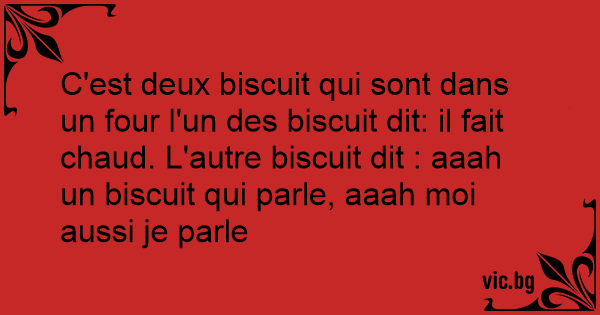 C'est deux biscuit qui sont dans un four l'un des biscuit dit: il fait chaud. L'autre biscuit dit : aaah un biscuit qui parle, aaah moi aussi je parle