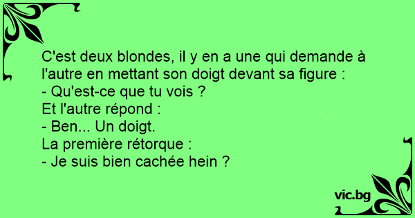 C'est deux blondes, il y en a une qui demande à l'autre en mettant son doigt devant sa figure :
