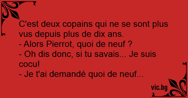 - Oh dis donc, si tu savais... Je suis cocu!