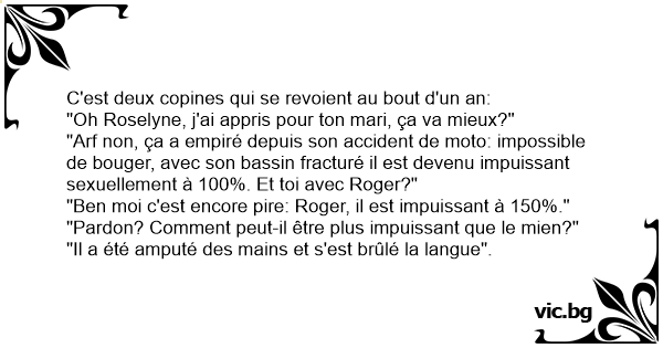 "Ben moi c'est encore pire: Roger, il est impuissant à 150%."