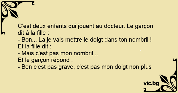 C'est deux enfants qui jouent au docteur. Le garçon dit à la fille :