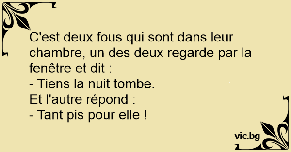 C'est deux fous qui sont dans leur chambre, un des deux regarde par la fenêtre et dit :
