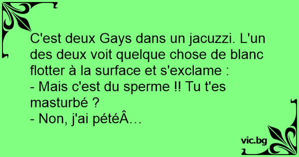 C'est deux Gаys dans un jacuzzi. L'un des deux voit quelque chose de blanc flotter à la surface et s'exclame :