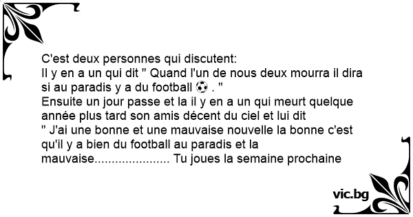 Il y en a un qui dit " Quand l'un de nous deux mourra il dira si au paradis y a du football ⚽ . "