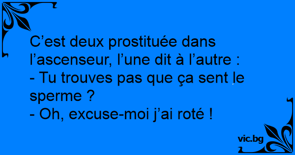 Deux prostituées dans un ascenseur. L'une : ça sent le sperme ici. L'autre : c'est normal je viens de roter.