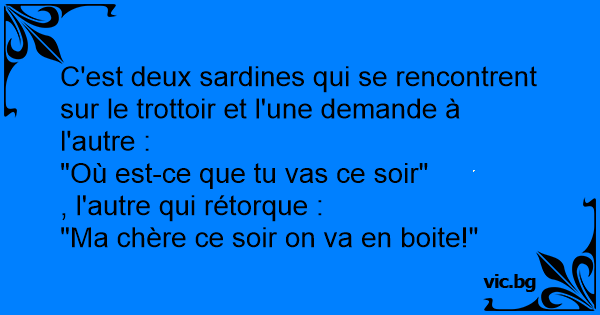 C'est deux sardines qui se rencontrent sur le trottoir et l'une demande à l'autre :