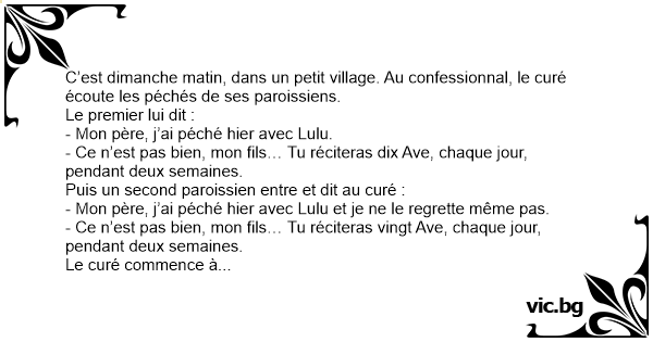 - Mon père, j’ai péché hier avec Lulu et je ne le regrette même pas.