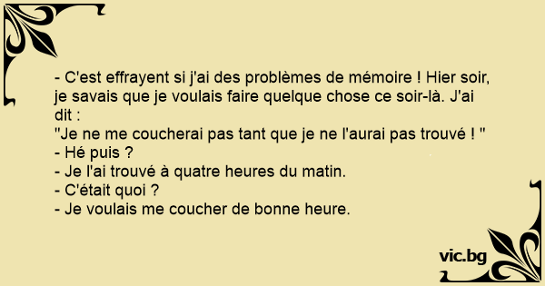 - C'est effrayent si j'ai des problèmes de mémoire ! Hier soir, je savais que je voulais faire quelque chose ce soir-là. J'ai dit :