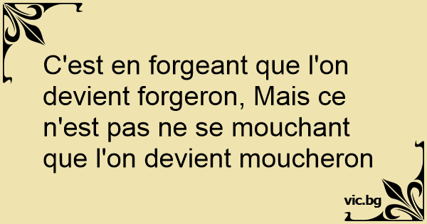 C'est en forgeant que l'on devient forgeron, Mais ce n'est pas ne se mouchant que l'on devient moucheron