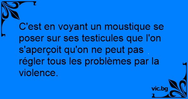 C'est en voyant un moustique se poser sur ses testicules que l'on s'aperçoit qu'on ne peut pas régler tous les problèmes par la violence.
