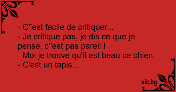 - Je critique pas, je dis ce que je pense, c'est pas pareil !