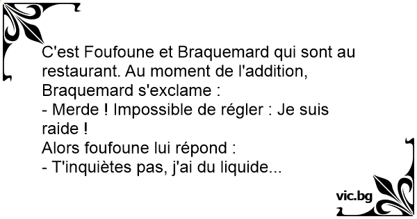 C'est Foufoune et Braquemard qui sont au restaurant. Au moment de l'addition, Braquemard s'exclame :