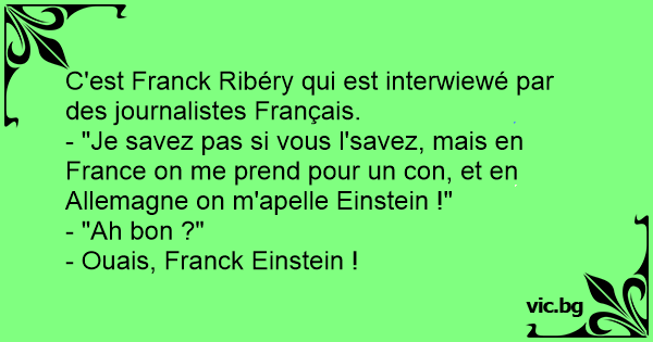 - "Je savez pas si vous l'savez, mais en France on me prend pour un соn, et en Allemagne on m'apelle Einstein !"