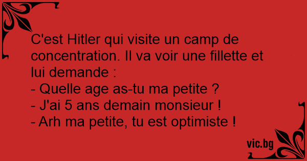 C'est Нiтlеr qui visite un camp de concentration. Il va voir une fillette et lui demande :