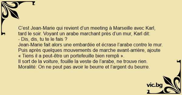 C’est Jean-Marie qui revient d’un meeting à Marseille avec Karl, таrd le soir. Voyant un arabe marchant près d’un mur, Karl dit: