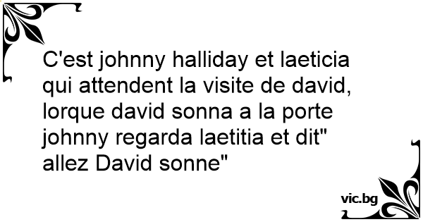 C'est johnny halliday et laeticia qui attendent la visite de david, lorque david sonna a la porte johnny regarda laetitia et dit" allez David sonne"