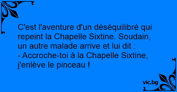C'est l'aventure d'un déséquilibré qui repeint la Chapelle Sixtine. Soudain, un autre malade arrive et lui dit :