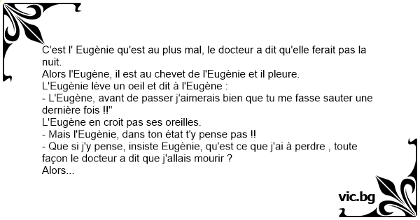Alors l'Eugène, il est au chevet de l'Eugènie et il pleure.