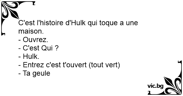 C'est l'histoire d'Hulk qui toque a une maison.