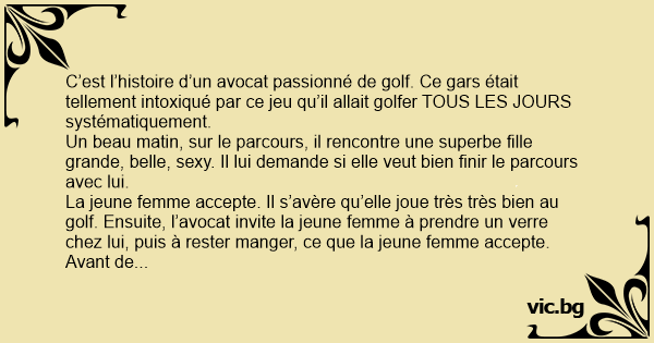C’est l’histoire d’un avocat passionné de golf. Ce gars était tellement intoxiqué par ce jeu qu’il allait golfer TOUS LES JOURS systématiquement.