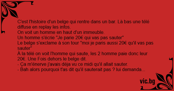 C'est l'histoire d'un belge qui rentre dans un bar. Là bas une télé diffuse en replay les infos.
