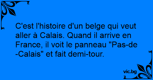 C'est l'histoire d'un belge qui veut aller à Calais. Quand il arrive en France, il voit le panneau "Pas-de-Calais" et fait demi-tour.