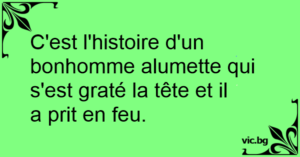 C'est l'histoire d'un bonhomme alumette qui s'est graté la tête et il a prit en feu.