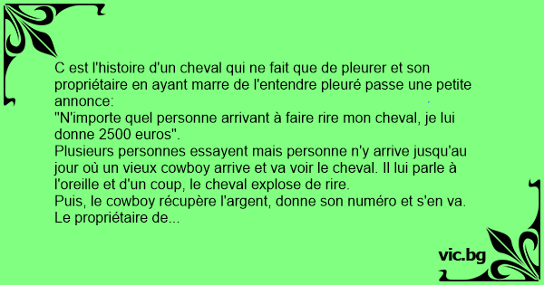 "N'importe quel personne arrivant à faire rire mon cheval, je lui donne 2500 euros".