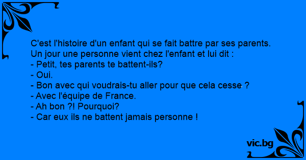 C'est l'histoire d'un enfant qui se fait battre par ses parents. Un jour une personne vient chez l'enfant et lui dit :