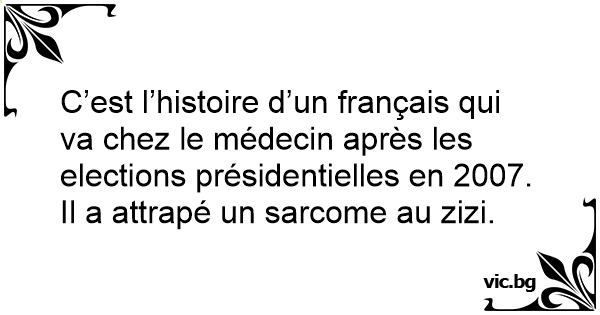 C’est l’histoire d’un français qui va chez le médecin après les elections présidentielles en 2007. Il a attrapé un sarcome au zizi.