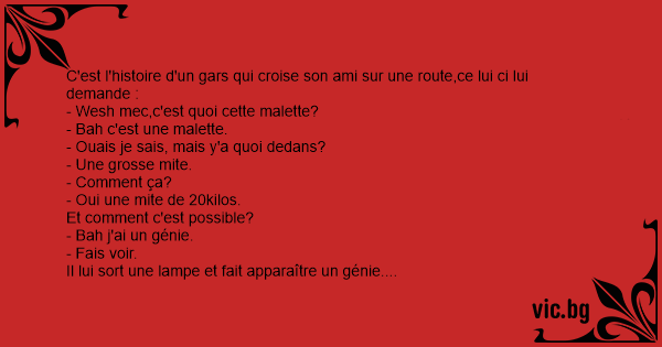 C'est l'histoire d'un gars qui croise son ami sur une route,ce lui ci lui demande :