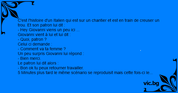 C'est l'histoire d'un Italien qui est sur un chantier et est en train de creuser un trou. Et son patron lui dit :