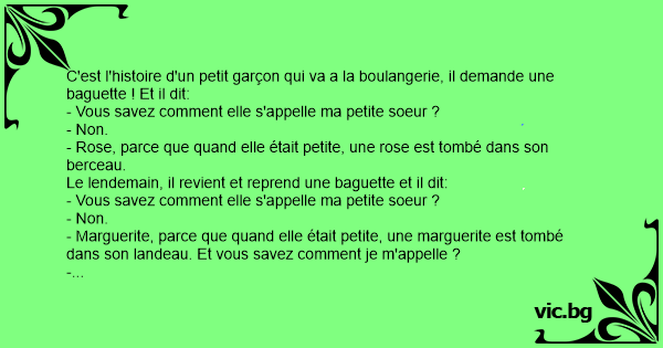 - Marguerite, parce que quand elle était petite, une marguerite est tombé dans son landeau. Et vous savez comment je m'appelle ?