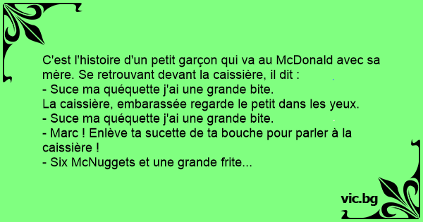C'est l'histoire d'un petit garçon qui va au McDonald avec sa mère. Se retrouvant devant la caissière, il dit :
