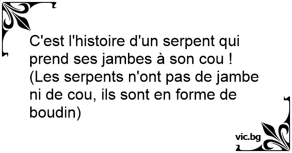 (Les serpents n'ont pas de jambe ni de cou, ils sont en forme de boudin)