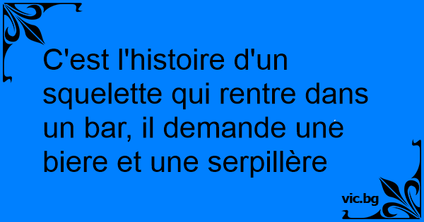 C'est l'histoire d'un squelette qui rentre dans un bar, il demande une biere et une serpillère