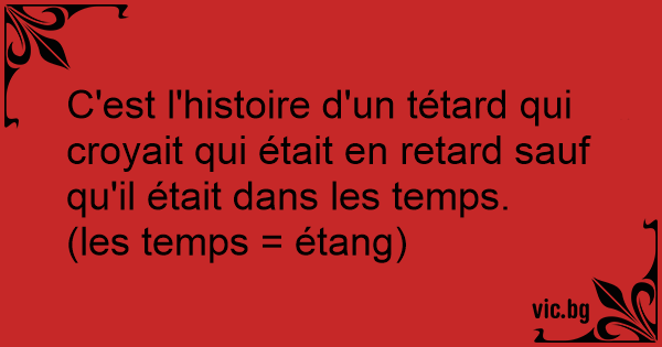 C'est l'histoire d'un tétard qui croyait qui était en rетаrd sauf qu'il était dans les temps.