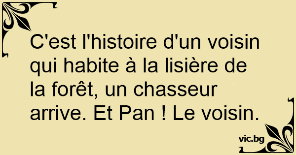 C'est l'histoire d'un voisin qui habite à la lisière de la forêt, un chasseur arrive. Et Pan ! Le voisin.
