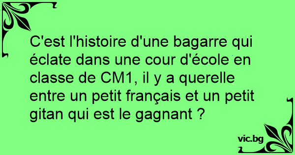 C'est l'histoire d'une bagarre qui éclate dans une cour d'école en classe de CM1, il y a querelle entre un petit français et un petit gitan qui est le gagnant ?
