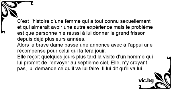 Alors la brave dame passe une annonce avec à l’appui une récompense pour celui qui la fera jouir.