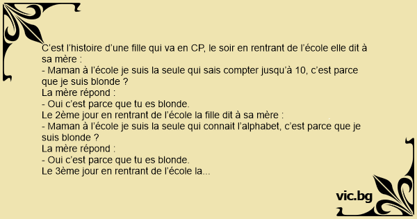 - Maman à l’école je suis la seule qui sais compter jusqu’à 10, c’est parce que je suis blonde ?